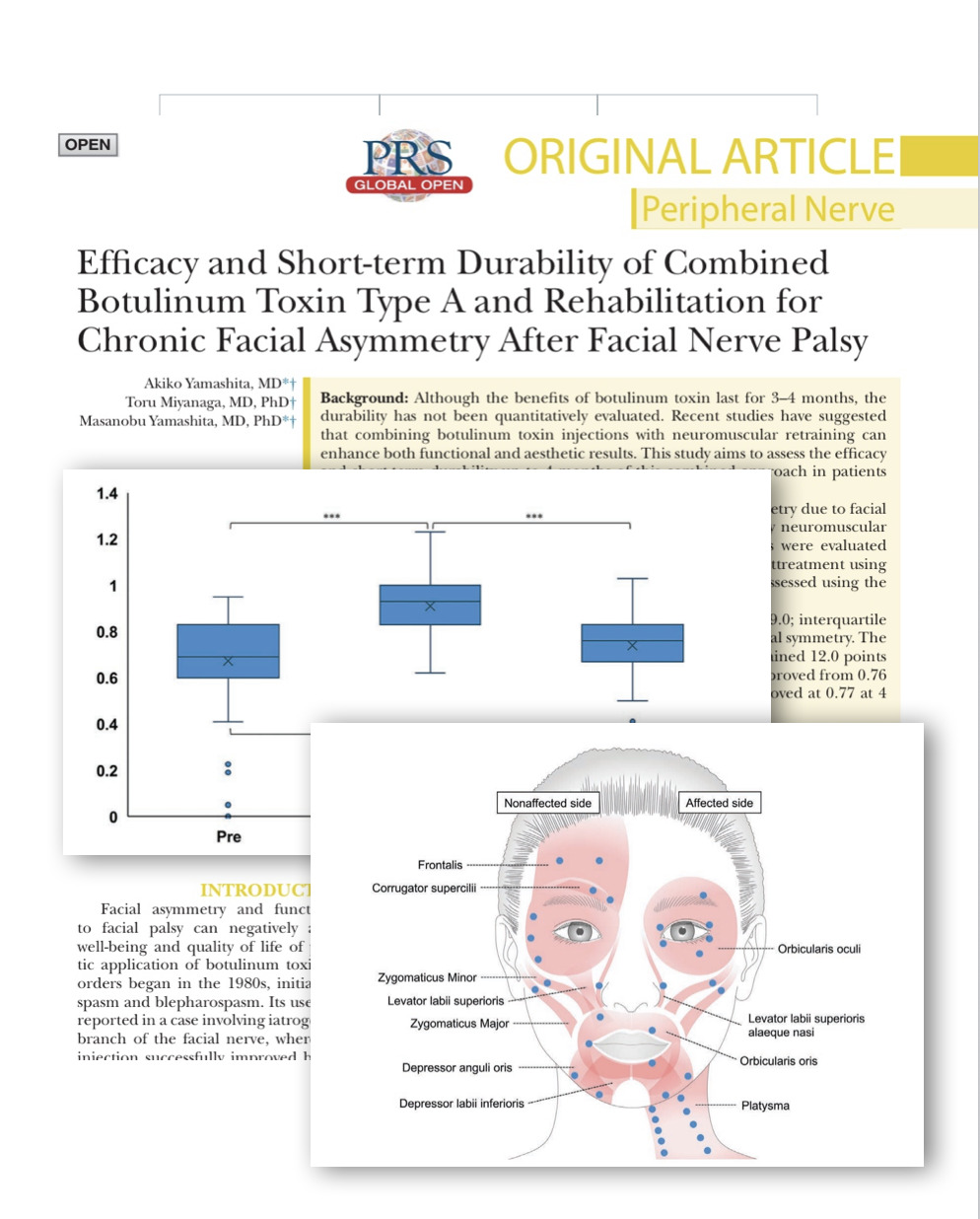 これは顔面神経麻痺の後遺症による顔のゆがみに対する治療効果についての研究です。