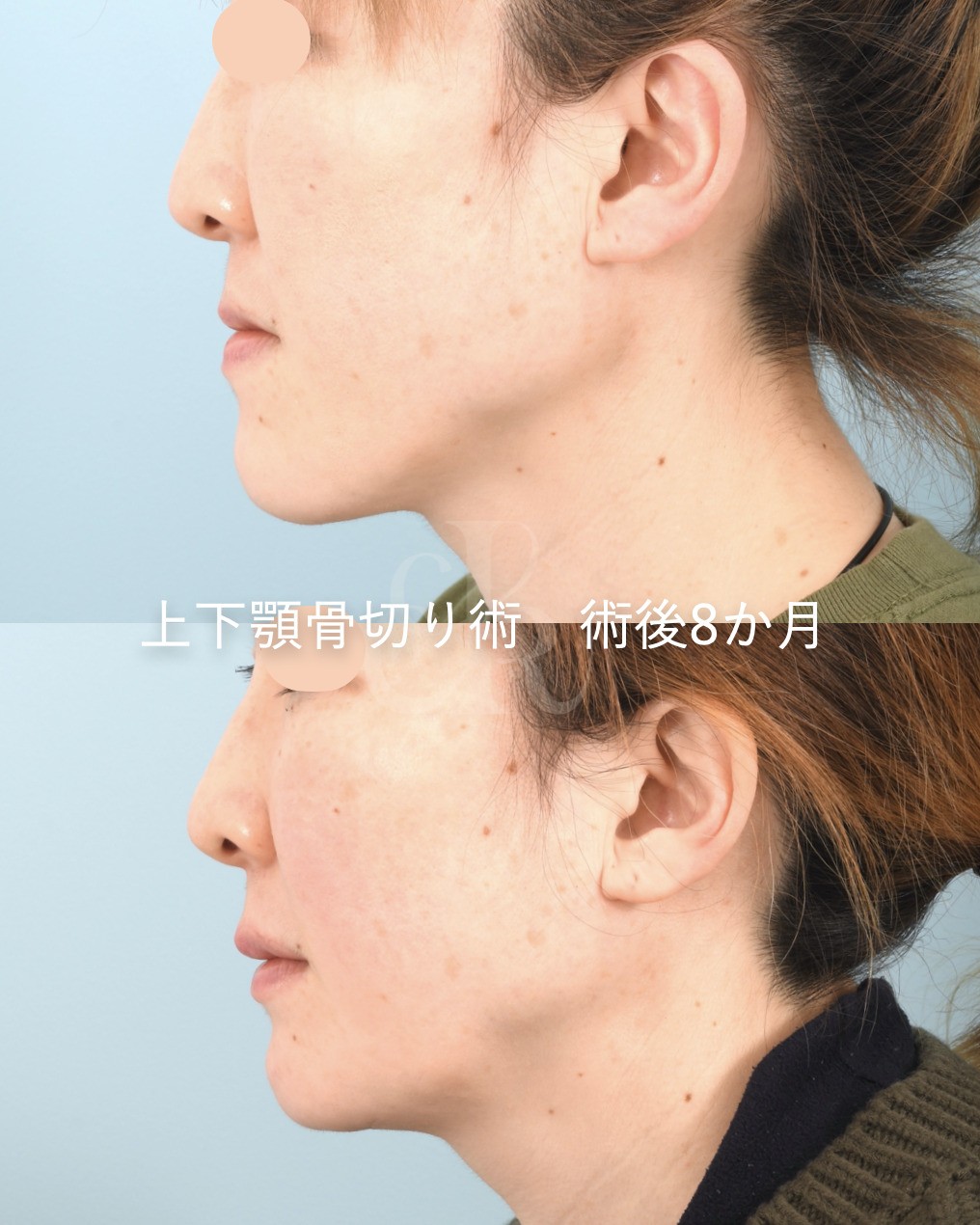 【40代女性】上下顎骨切り術+オトガイ形成術(あごの突出感の改善)術前/術後8か月