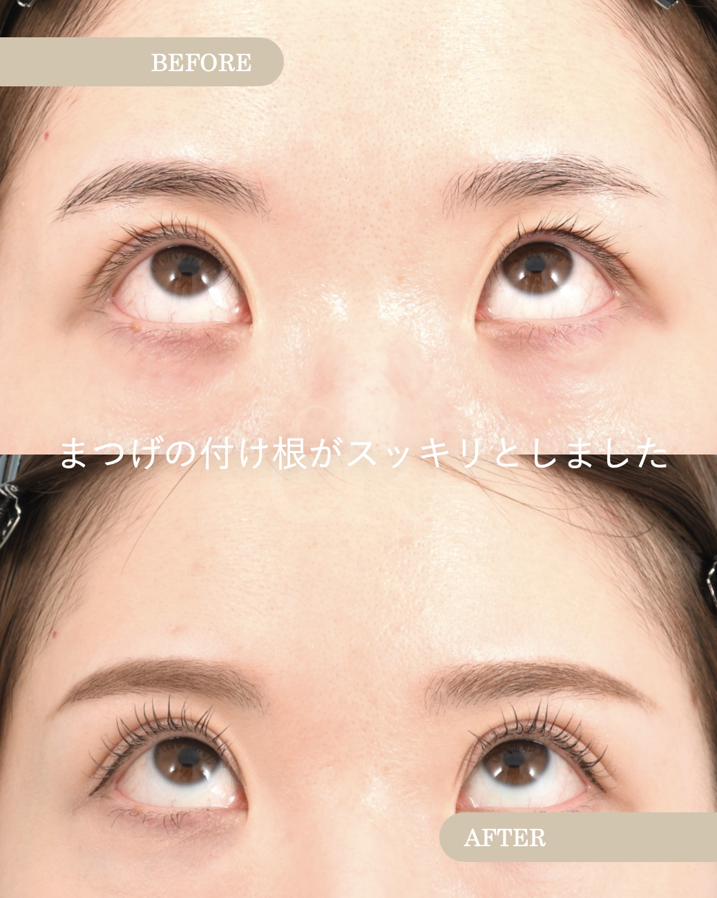 上をみたときにまつげとまぶたの皮膚が当たっていましたが、埋没法の後はまつげが当たらなくなっています。埋没法はこのような軽度の逆まつげの治療にもなります。