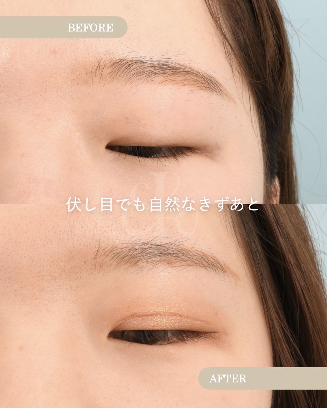 伏し目になったときもくい込みがなく、正面をみたときはしっかりと二重ラインができるのも形成外科専門医だからこその技術です