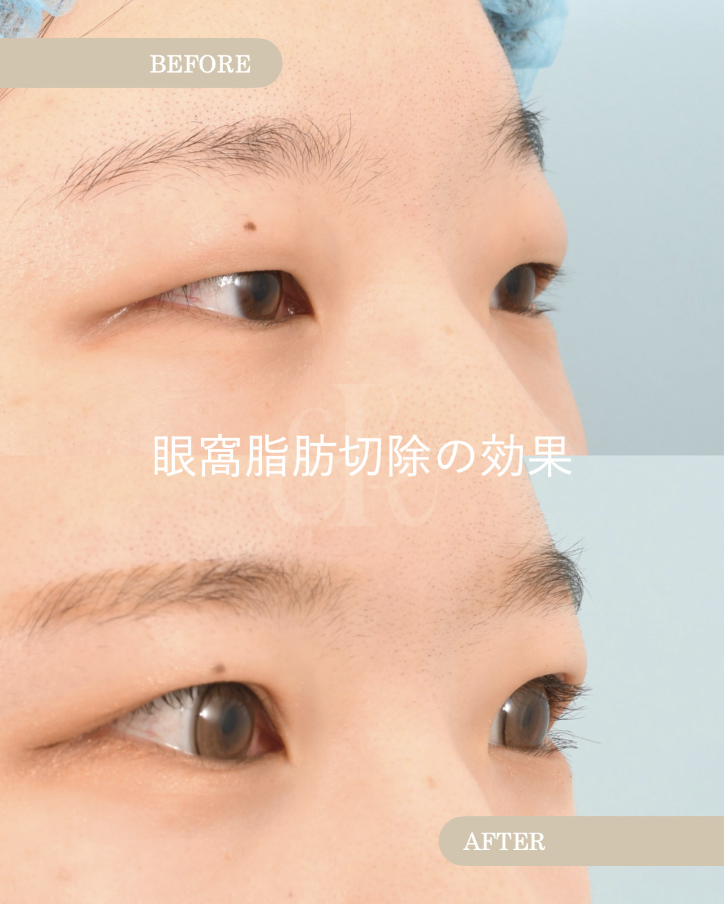 ※眼窩脂肪の切除は手術中の判断でおこないます。追加費用はかかりません。さかまつげ改善の処置についても必要あればおこないますが、追加費用はかかりません。
