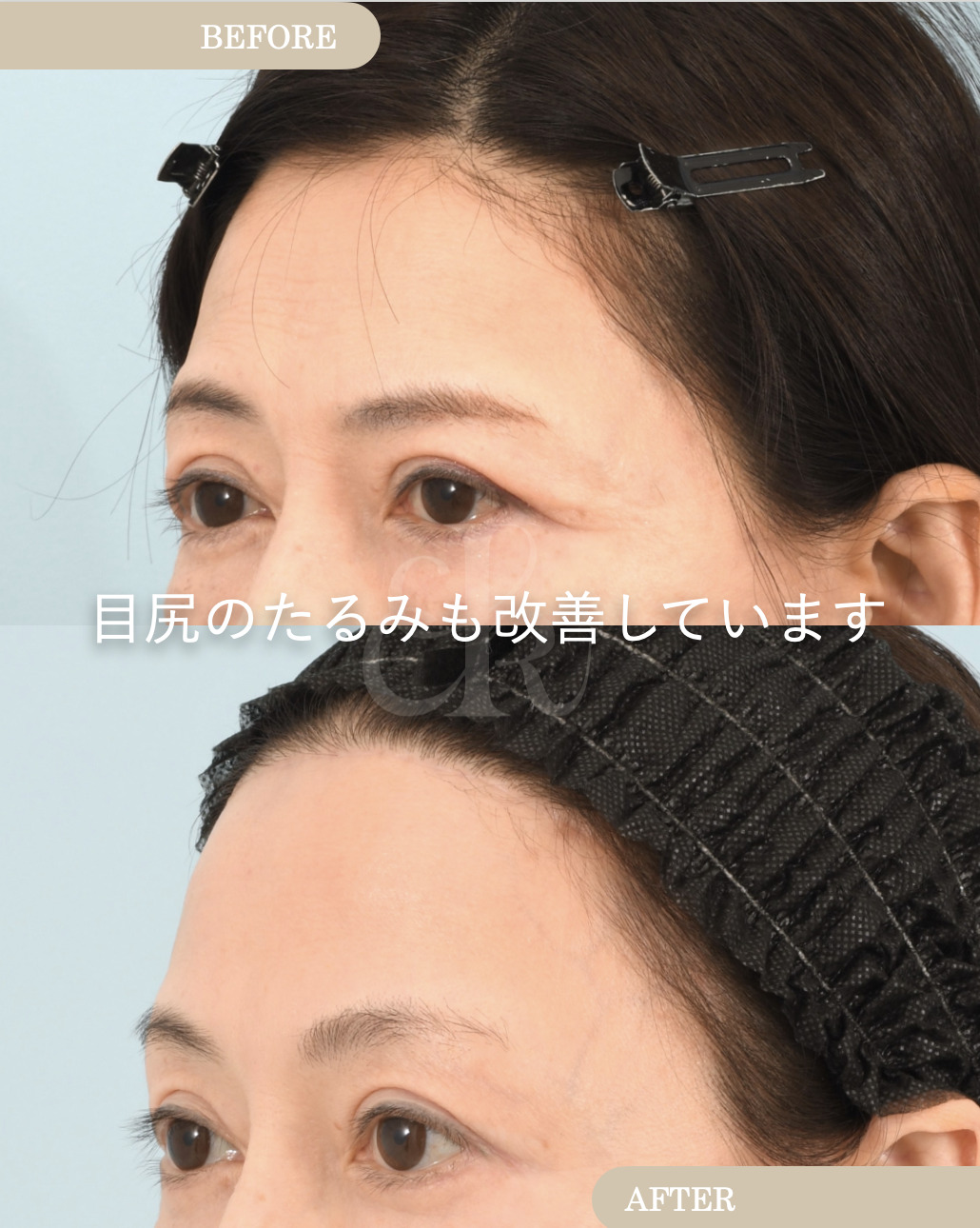 額全体が引き上がることで、すっきりとした若々しい印象になります。