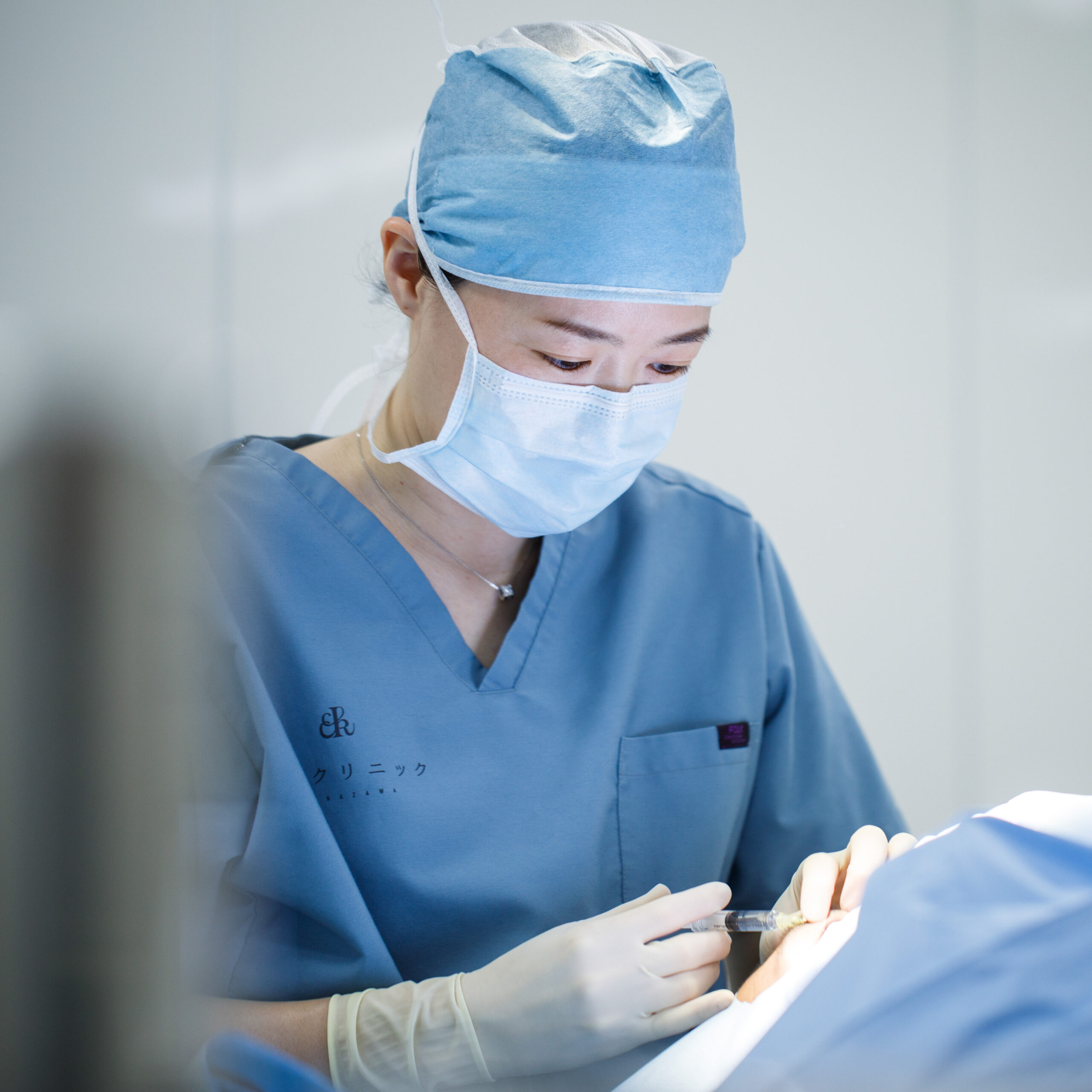 まひのない側の動きすぎている表情筋にボツリヌストキシンを投与することで強すぎる動きを弱めて表情を自然にもどす。
