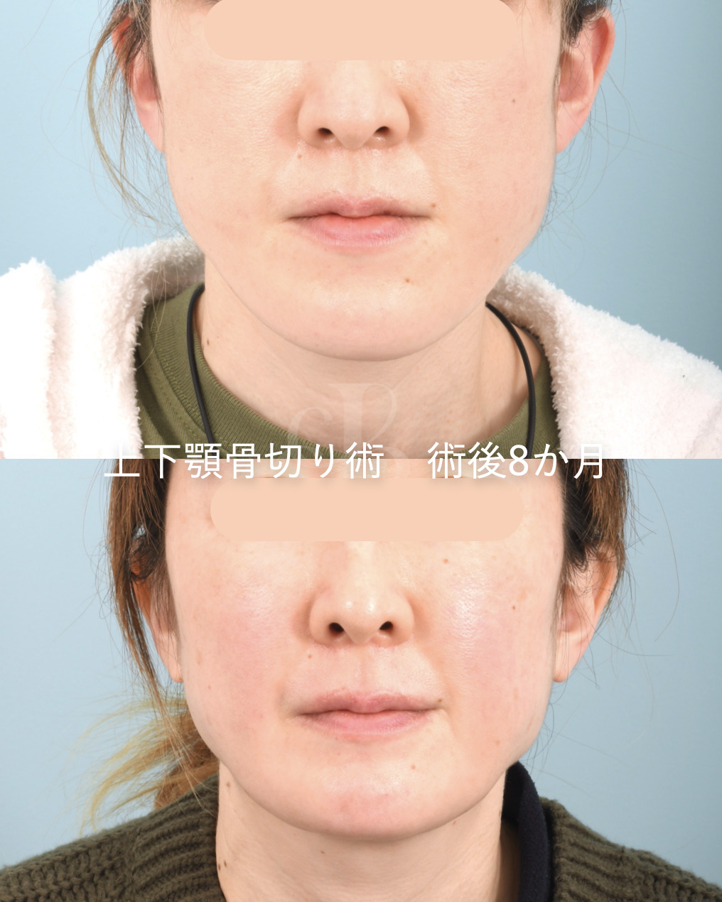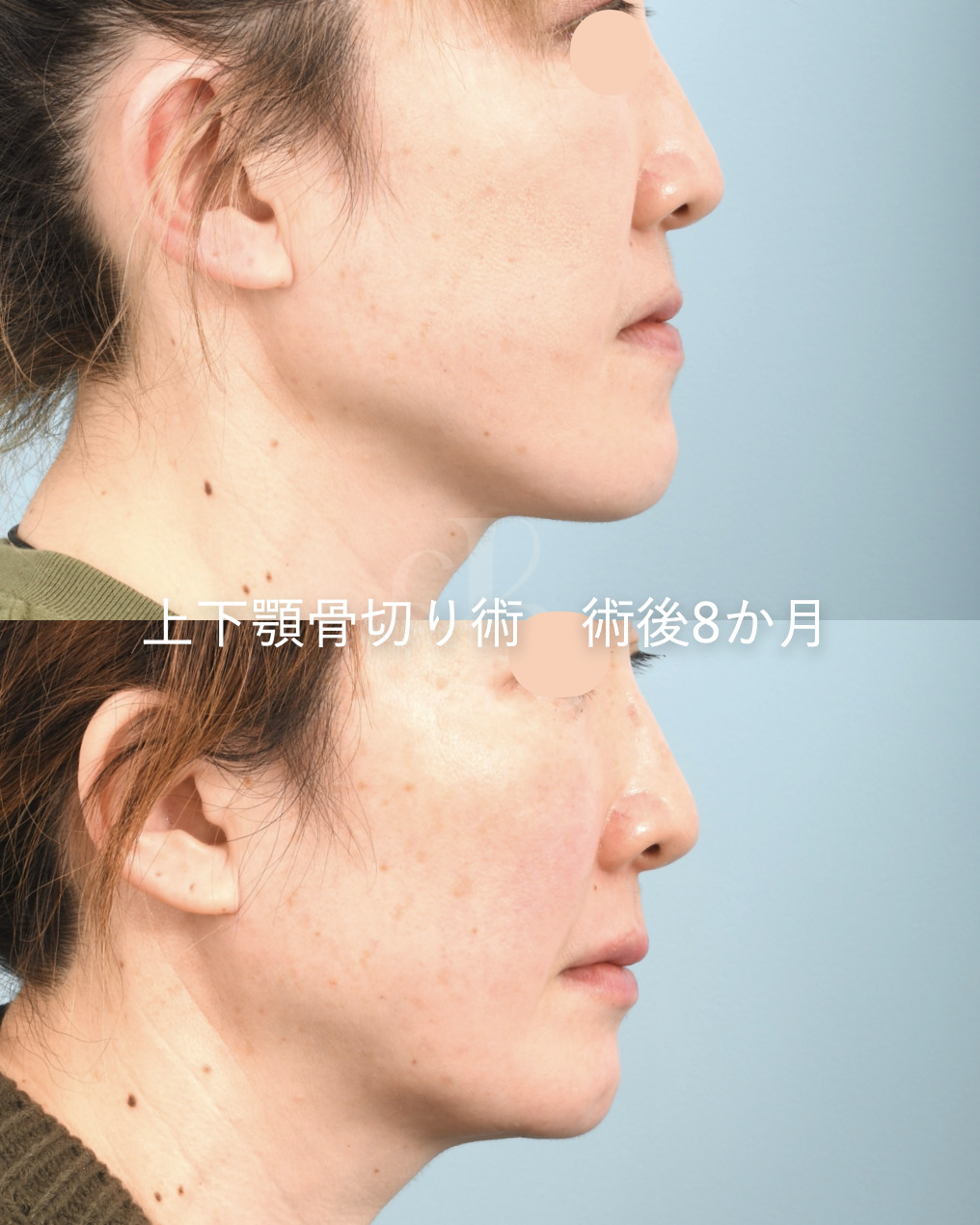 手術の内容:上下顎骨切り術(時計回転)+オトガイ形成(4㎜中抜き)