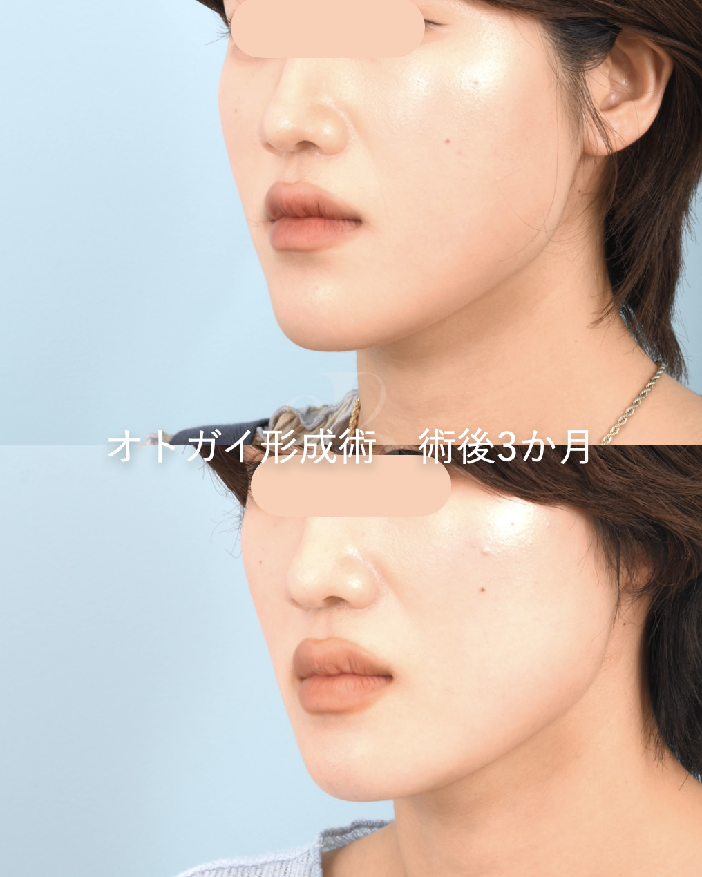 手術の内容:オトガイ形成(中抜き+わずかに前進、Vライン形成、外板削除)